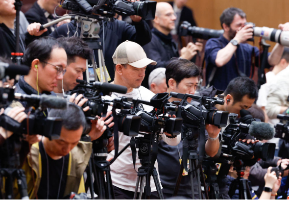 2025年3月10日,全国政协十四届三次会议在北京人民大会堂举行闭幕会。这是记者在会场采访。新华社记者 张玉薇 摄