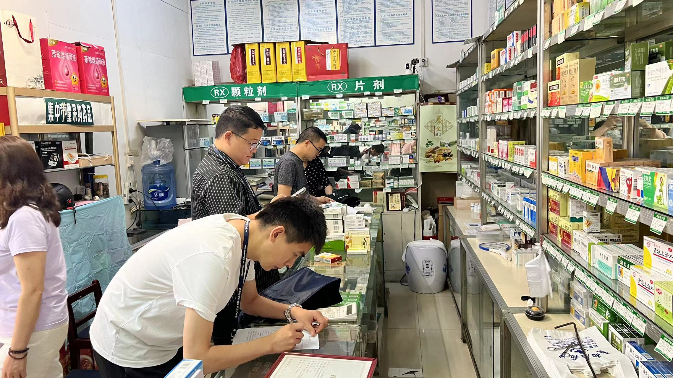 此次联合检查对我市辖区内定点零售药店进行梳理,三部门执法人员严格履行职责,明确检查范围,形成涵盖连锁门店和单体药店的执法检查清单,做到检查范围全覆盖。医保部门着重检查医保基金使用处方管理、药品利率及台账建立情况,深入稽查不合理加价、违规套取医保基金串换药品、处方不规范等违法违规行为;市场监管部门着重检查药械采购渠道、进货查验制度落实、药械储存养护、销售管理、明码标价等情况;卫健系统着重检查未凭医师处方销售处方药、执业药师不在岗销售处方药、未明码标价等违法违规行为。此次联合检查出动执法人员100余人次,检查零售药店20余家,对于检查中发现的违法违规行为,执法人员进行现场反馈,并提出了具体的整改意见,责令相关机构限期整改。