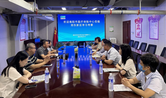 8月2日,南阳市医疗保险中心副主任王彬善一行4人到郑东新区医保办事大厅考察交流,郑东新区医疗保障中心主任及相关科室负责人陪同考察并参加座谈。