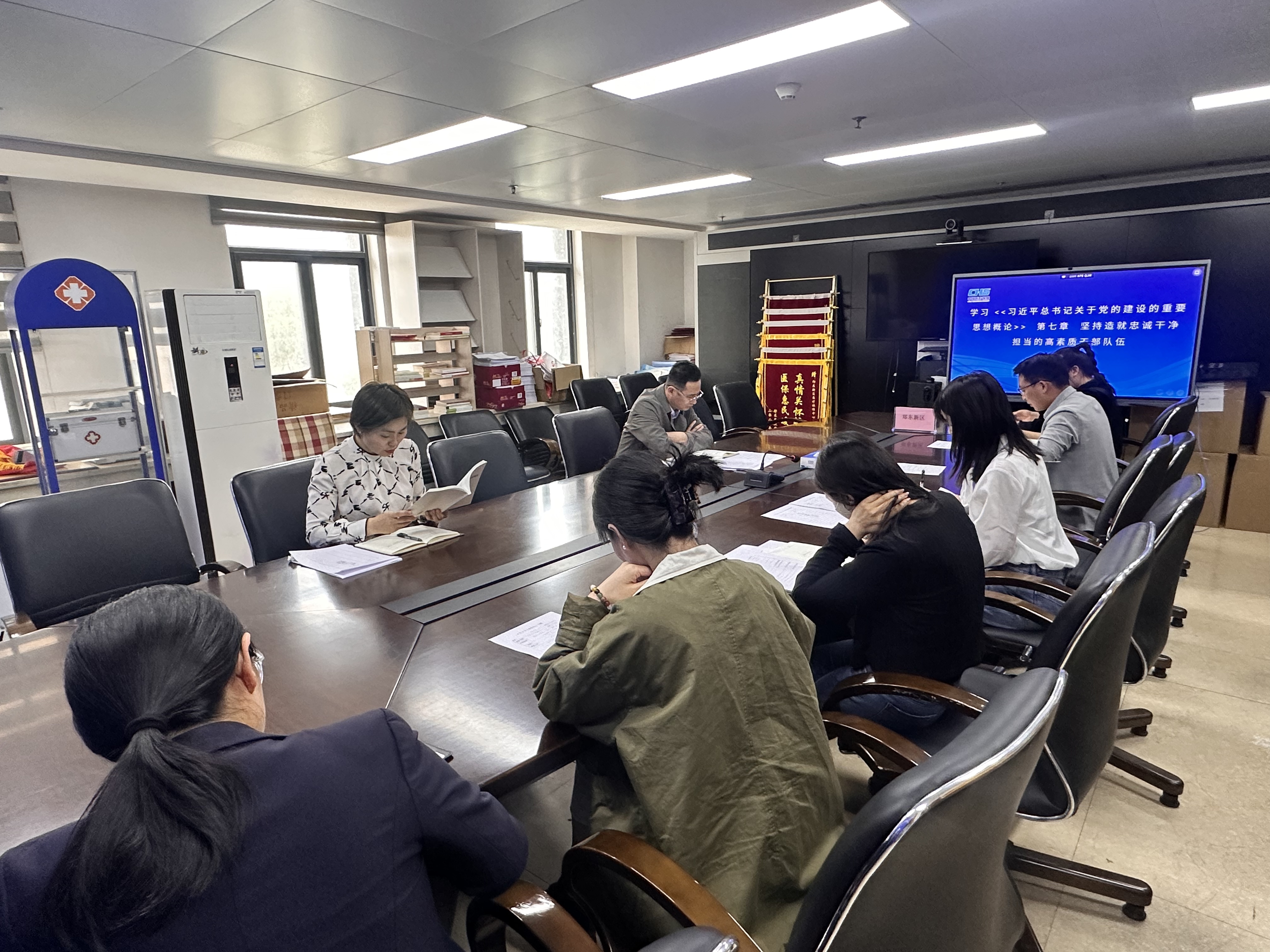 为深入贯彻习近平新时代中国特色社会主义思想,扎实领会习近平总书记关于党的建设的重要思想,严格落实中央八项规定精神及其相关要求,4月10日,郑东新区医保中心党支部召开党员大会,组织全体党员集中学习《习近平总书记关于党的建设的重要思想概论》第七章内容,进一步统一思想、凝聚共识,推动医保工作高质量发展。