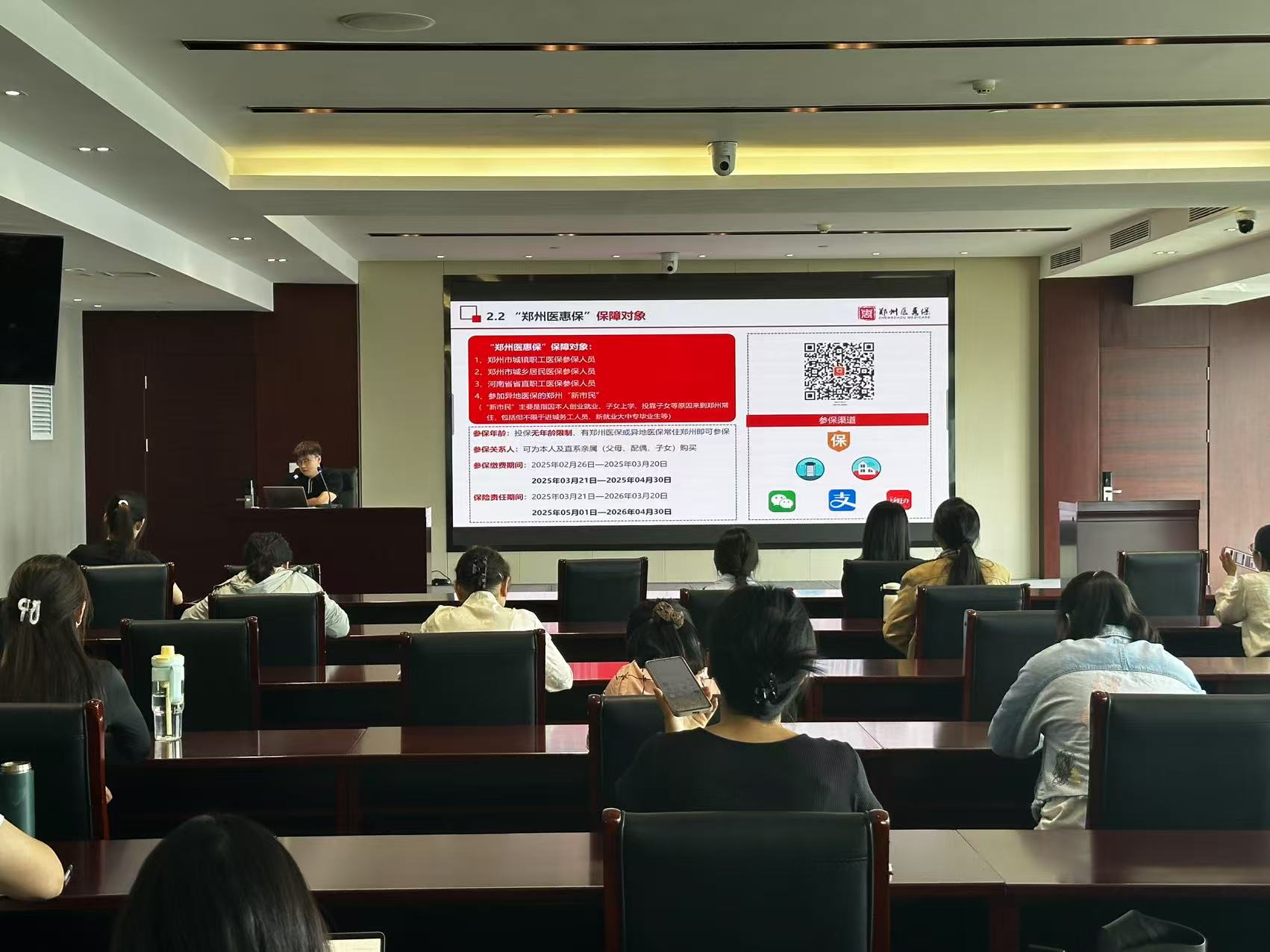 宣讲会上,采取“现场授课+互动交流”相结合的方式进行,医保业务骨干围绕郑州市职工医保机关业务经办流程、公务员医疗补助政策要点、职工生育津贴申领等方面展开了深入细致且全面的讲解,为经办人员理清业务操作流程、明确操作规范。医惠保工作人员详细讲解了“郑州医惠保”惠民政策。在互动环节中,经办人员提出了在日常业务办理过程中高频出现的难点、疑点问题,医保工作人员现场给予专业解答。会议尾声,参会人员纷纷表示收获颇丰,将积极把所学政策与业务流程转化为实践动能,着力补短板强弱项,全面提升服务效能。