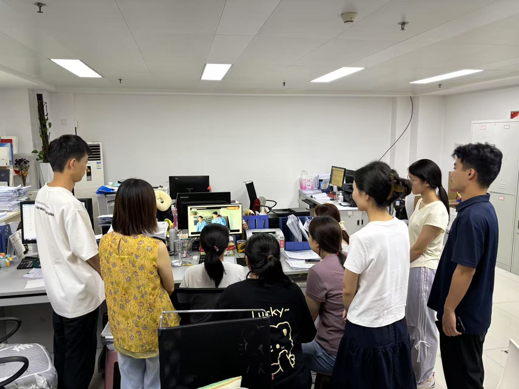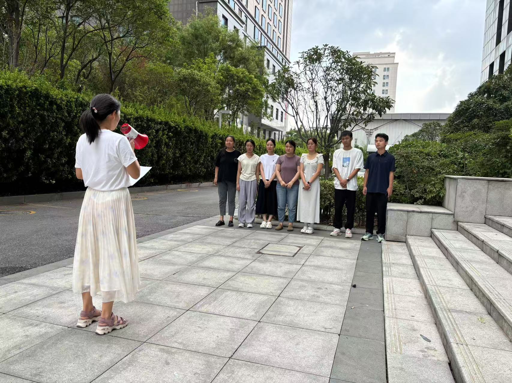 本次演练坚持“实战导向、精准施策”,严格按照应急演练方案,设计“地震+火灾”双场景模拟,演练前细化操作规范,组织观看示范视频并讲解动作要领,确保全员掌握自救技能,并全面排查安全隐患。演练中,双场景模拟触发警报,30秒后进入应急状态,全体职工15秒内完成躲桌下护头蜷曲的避险动作;警报停止后,工作人员通过扩音器统一指挥,引导大家沿办公室经北侧楼梯的预定路线撤离至安全区域,随后清点人数并上报,确认无遗漏,并进行总结复盘。